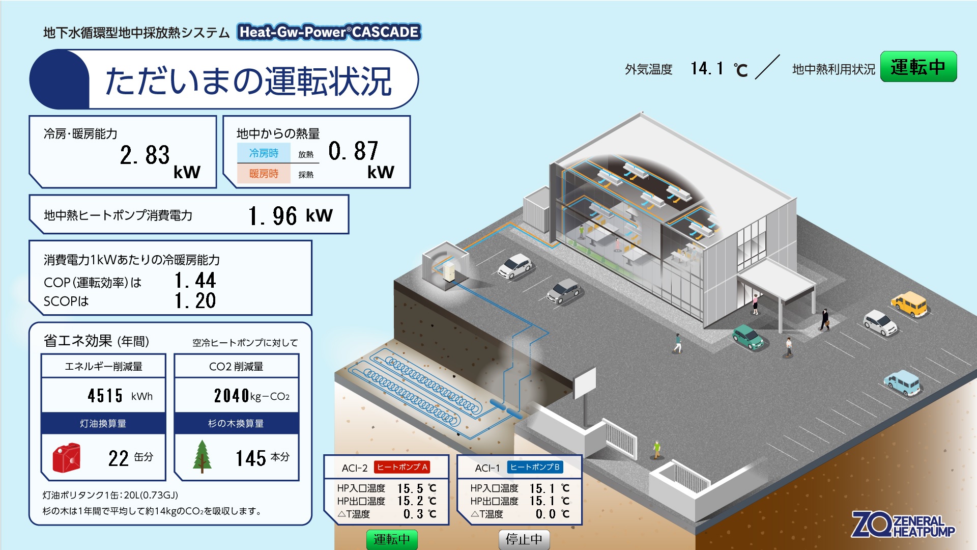 2025年9月30日(火)13時におけるHeat-Gw-PowerCASCADEの運転成績です。省エネ効果に関しては4月から6ヵ月間の積算値です。